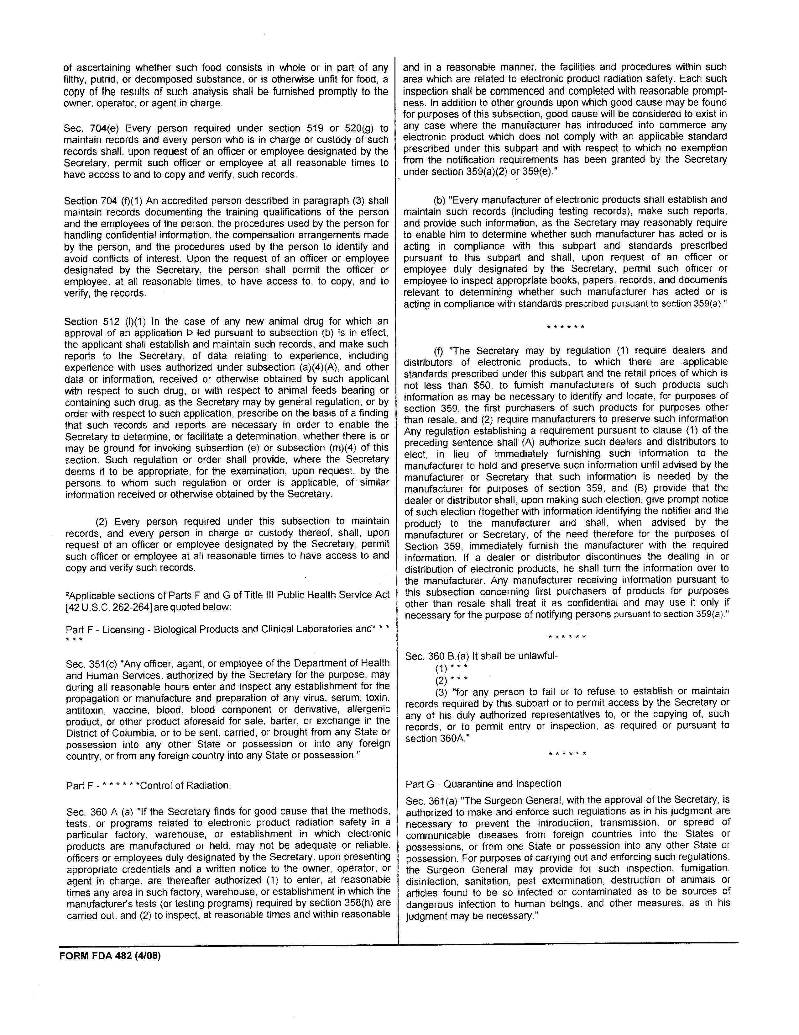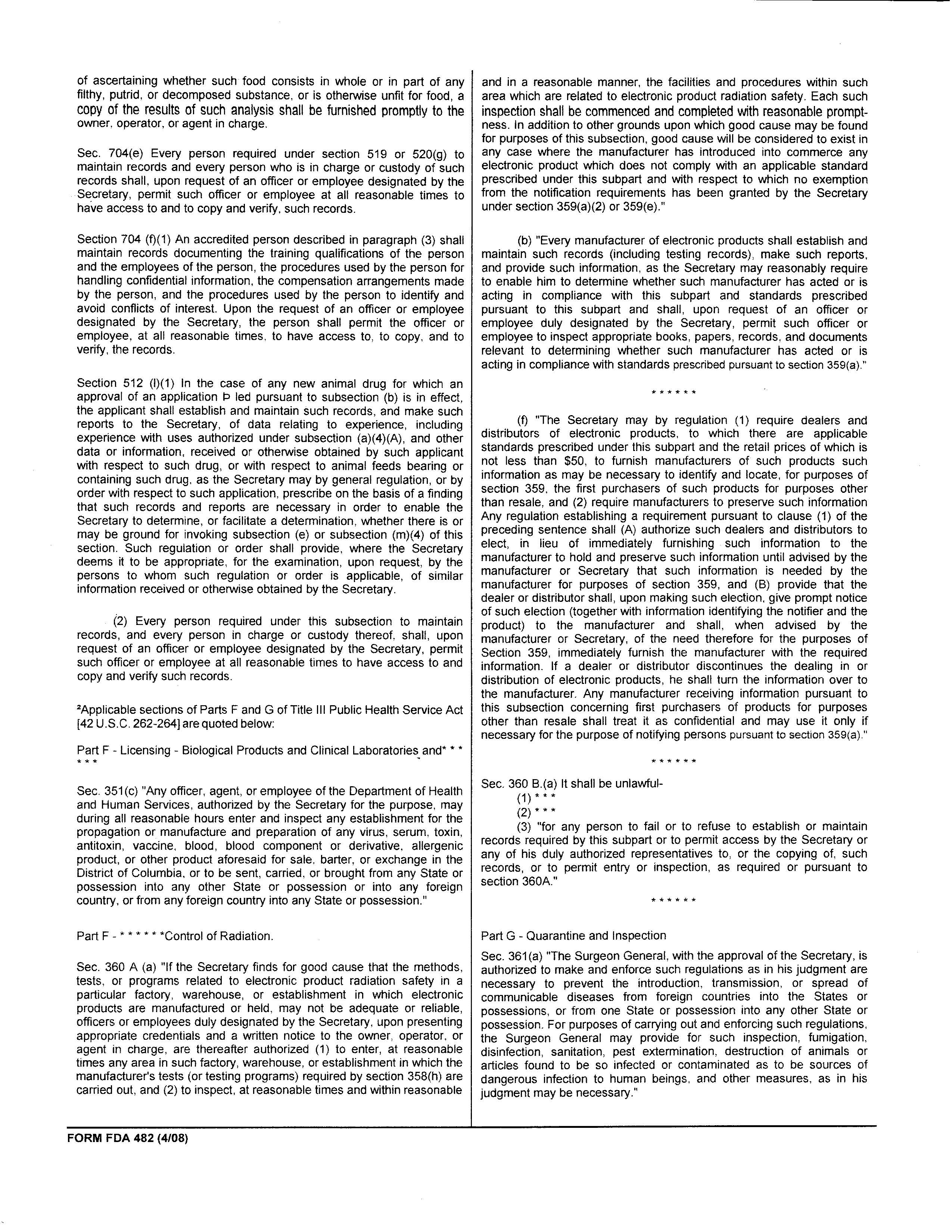 FDA Form 482 (4 total) issue during each inspection visit - Aug - Sep, 2010 - Page 2 of 8