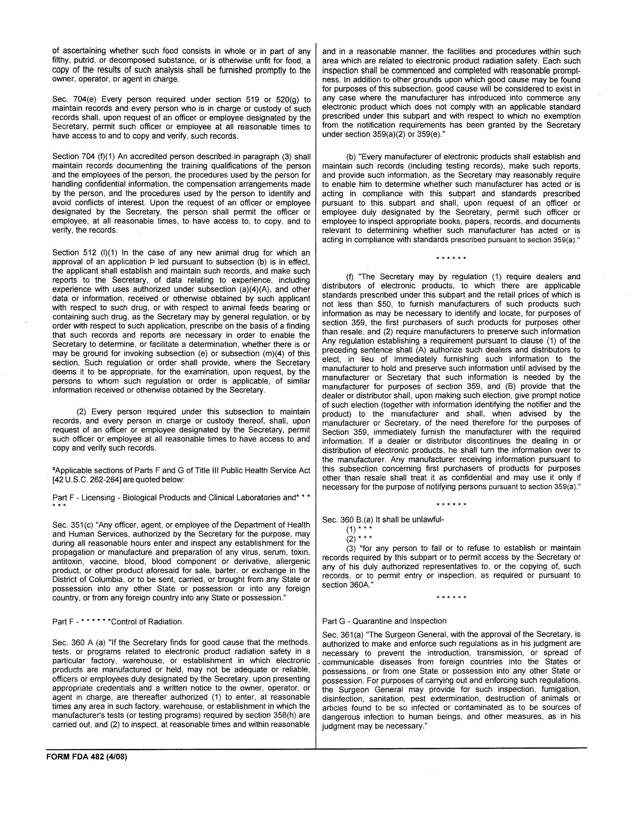 FDA Form 482 (4 total) issue during each inspection visit - Aug - Sep, 2010 - Page 1 of 8
