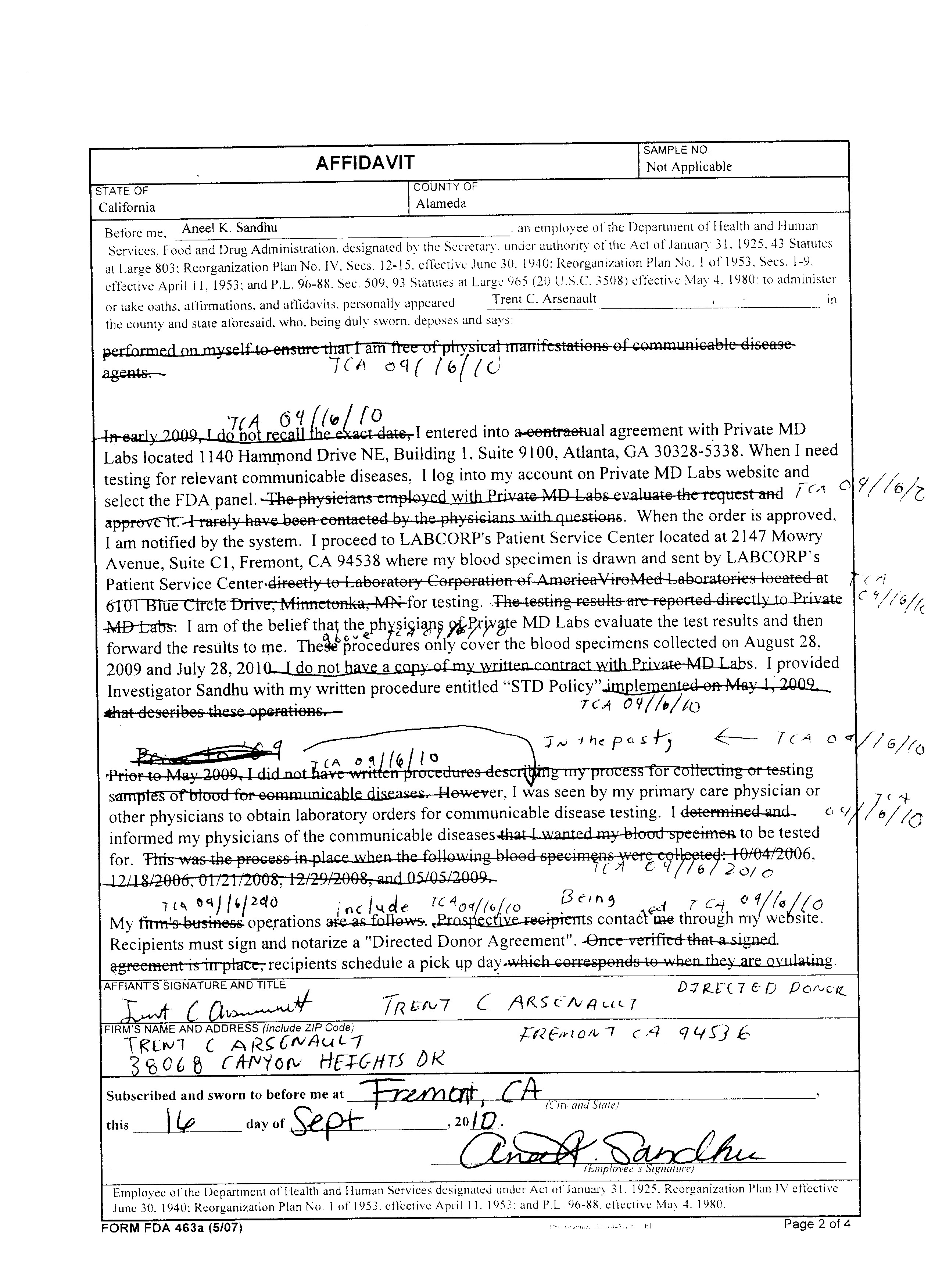 Form FDA 463a Signed Affadavit - 16-Sep-2010 - Page 2 of 4